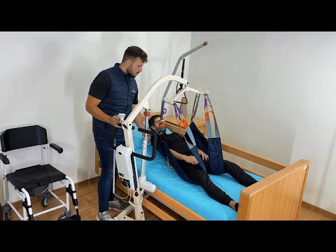 Ayuda a trasladar a las personas de la cama a una silla de ruedas, un sillón o en la higiene diaria. Permite elevar hasta un máximo de 1,70 metros.